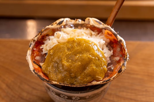 「北大路倶楽部おまかせコース」は全14品のおまかせに、飲み放題を加えたコースを10,500円(税込)という高いコストパフォーマンスのメニューとして提案するものです。『北大路倶楽部 CREATIVE ITAMAE』のコンセプトどおりに、約3か月間の旬を迎える食材を使用した料理が楽しめます。「大とろ」「中とろ」「冬鰆」「寒鰤」「炙り金目」など旬の魚の握りはもちろん、北海道厚岸産のズワイ蟹を蟹身に蟹味噌餡を絡めてお召し上がりいただく「焼きズワイ蟹」、淡雪塩をのせた「天然平目刺し」、甘みが強い冬かぶを一番出汁と合わせた椀「冬蕪のすり流し」などの逸品も堪能できる予約必至のコースとなっています。