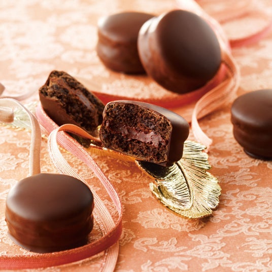 ビターな味わいのガナッシュクリームを、ココアを入れて焼き上げたマカロン生地にサンドし、ハイカカオチョコレートで丸ごとコーティング。カカオ分の高いチョコレートを好まれる方にもおすすめです。