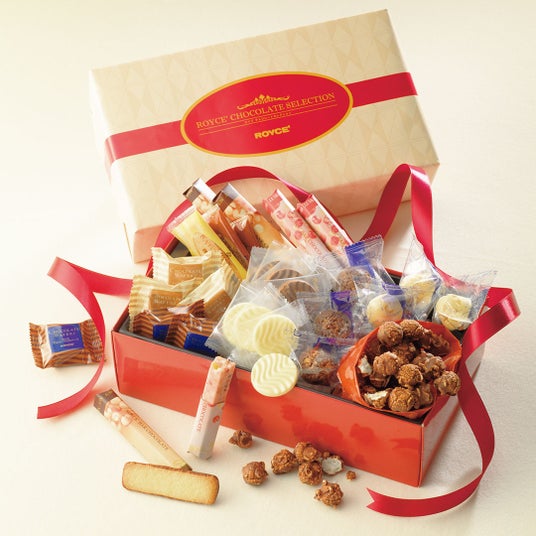気軽に楽しめるサイズのポップコーンチョコレート[オリジナル]やナッティバーチョコレート、ピュアチョコレートなどのロイズの人気商品をバラエティ豊かに詰め合わせました。大切な人へたくさんの想いと感謝を込めて贈りたい、限定パッケージのギフトです。