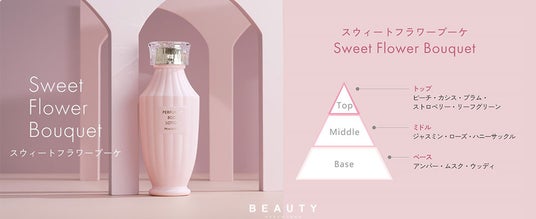 パウダリーなフローラルノートを基調に、みずみずしい花々が優雅な雰囲気を演出。