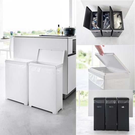 組み立て簡単!45Lゴミ袋がぴったり収まるスリムな横開き蓋付きゴミ箱。