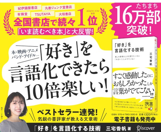 株式会社ディスカヴァー・トゥエンティワン(本社:東京都千代田区、代表取締役兼社長執行役員:谷口奈緒美)が2024年7月31日に刊行した、書評家・三宅香帆氏による書籍『「好き」を言語化する技術』が、発売からおよそ5か月で16万部を突破いたしました。