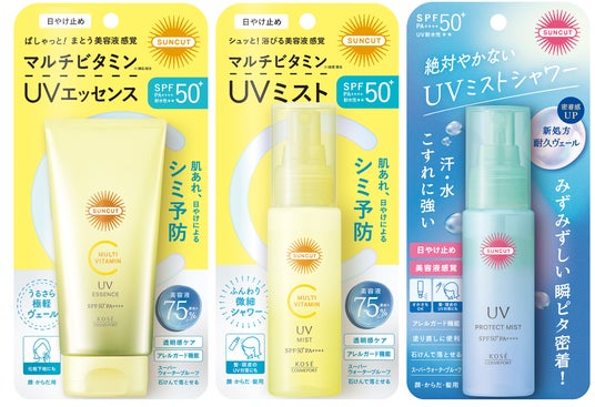 コーセーコスメポート株式会社(本社:東京都中央区、代表取締役社長:小林 孝雄)は、当社を代表する日やけ止めブランド『サンカット(R)』より美肌づくりに不可欠なマルチビタミン※1を配合し、高い紫外線カット効果とスキンケア効果を備えた「UVエッセンスV」「UVミストV」(2品目2品種、ノープリントプライス)を2025年2月3日より全国の量販店・ドラッグストアを中心に発売します。