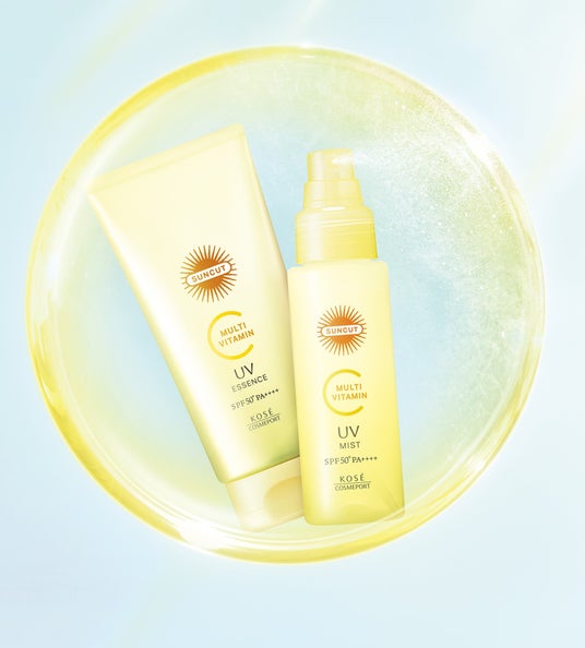 『サンカット(R)』は、毎日使える心地よさを大切に考えています。「マルチビタミン(保湿)※1UVシリーズ」は美容液75%配合※3。うるおいをたっぷり含み美容液感覚でお使いいただける軽いテクスチャーで、素肌と一体化したような心地よいつけ心地を実現しました。水感あふれなめらかに密着するエッセンスタイプと、みずみずしいヴェールでピタっと密着するミストタイプをラインナップしています。