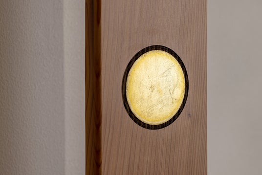 本作は、伊勢神宮で大切に育まれた杉を使用するとともに、正面中央に純金箔で円状の“太陽”を象徴的にあしらった、芸術性と神聖さを兼ね備えた神棚です。伝統的な工法を活かしながら、現代のインテリアにも溶け込むデザインとなっています。