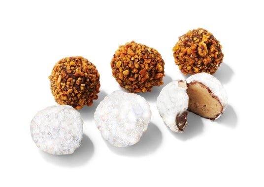さつまいものやさしい味わいが感じられる「プレーン」と、ほのかな苦みと香ばしさがさつまいもの風味を引き立てる「キャラメル」の2種。ほしいもピールフレークとパウダーをそれぞれいかしながら、なめらかな食感に仕上げたトリュフ。