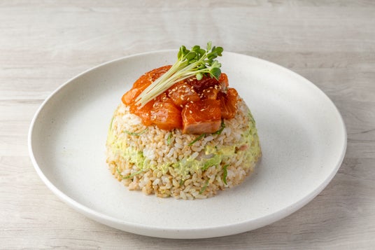 – 特長:茶碗やボールに、ポキ漬け・酢飯・タルタル・酢飯の順に敷き詰め、お皿にひっくり返して、上に小口ねぎと白ごまをかけたらあっという間に完成します。発芽米のぬかには酸味をやわらげる働きがあり、まろやかな酢飯に。見た目にも楽しく、お子様も食べやすい味に仕上がります。