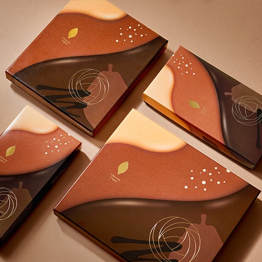 チョコレートが滴るようなとろりとした質感を表現し、見た目からもおいしさが伝わるパッケージデザインに仕上げました。ゴールドで描いたカカオポッドのアイコンは、今回のリニューアルで厳選したこだわりのチョコレートを象徴しています。