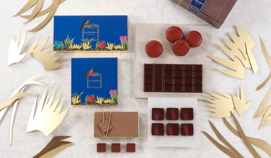 カメルーン産カカオを使ったボンボン ショコラ、マカロン、タブレットのセット。