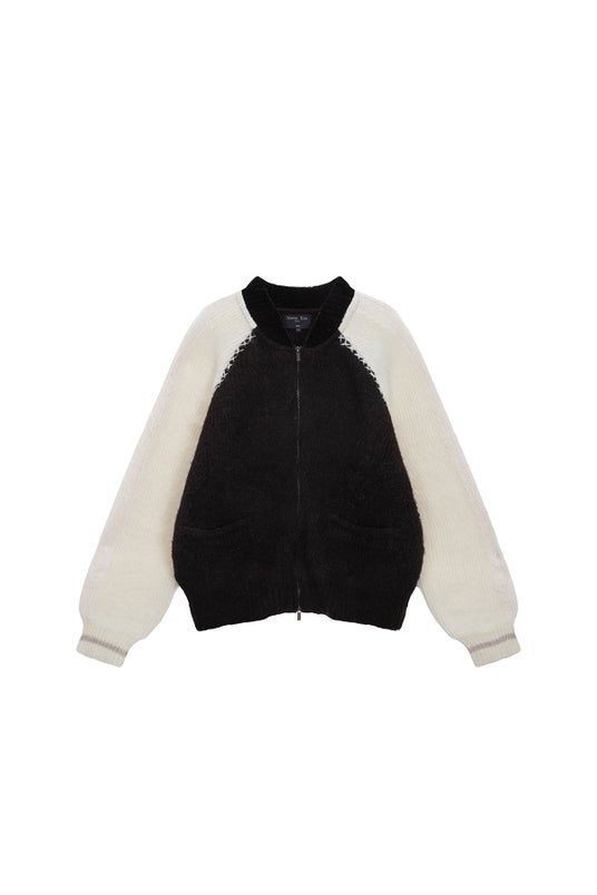 RAGLAN BACK LOGO KNIT ZIP UP FOR WOMEN IN BLACK