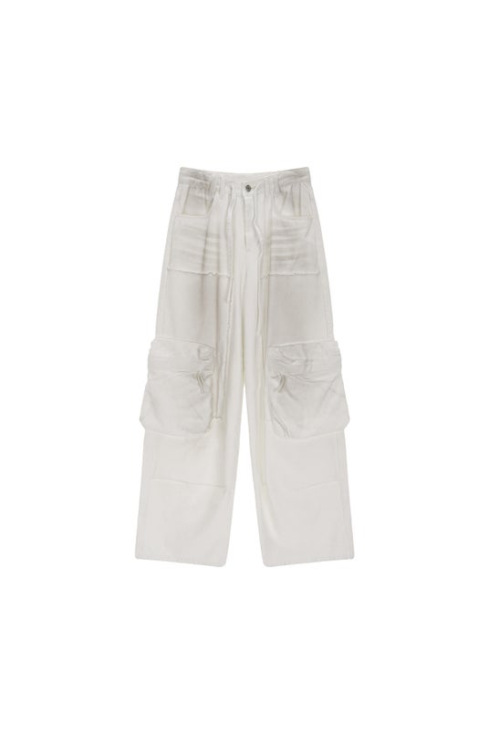 DIRTY WASHED HEAVY CARGO PANTS IN WHITE