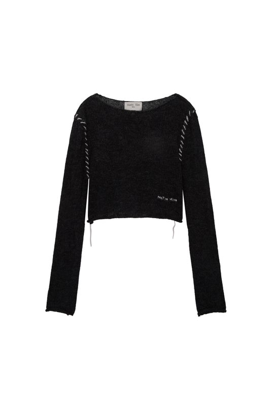 SLIMFIT SEE THROUGH STITCH KNIT TOP IN BLACK