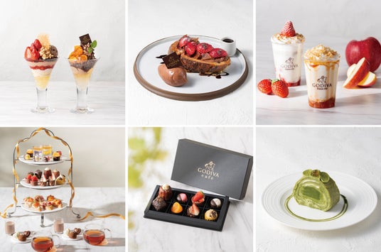 – 取扱店:「ストロベリーチョコレートパフェ」GODIVA cafe東京店、飯田橋店、日本橋店、みなとみらい店、大宮店、二子玉川店、越谷イオンレイクタウンmori店、日比谷店「フレンチトースト ストロベリー」GODIVA cafe東京店、飯田橋店、日本橋店、みなとみらい店、二子玉川店「ひんやり干し柿のチョコレートパフェ」GODIVA cafe東京店、飯田橋店、日本橋店、みなとみらい店、大宮店、二子玉川店、越谷イオンレイクタウンmori店、日比谷店「デザートドリンク アップルパイ」GODIVA cafe全店「デザートドリンク 苺のショートケーキ」GODIVA cafe全店