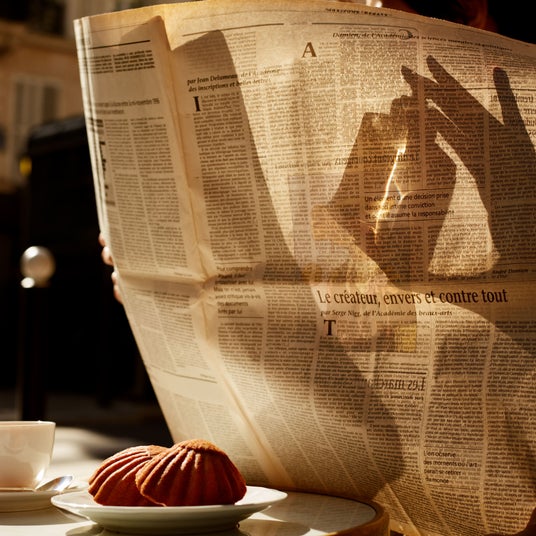 夕方5時のパリ。やわらかい西日が、街角のカフェテラスに差し込む。