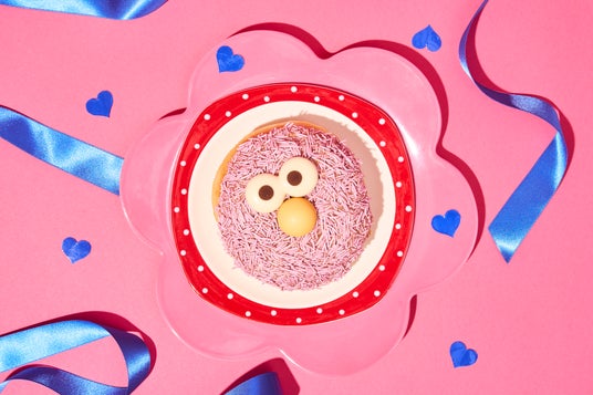 淡いダスティピンクに変身したバレンタイン仕様のクッキーモンスター。