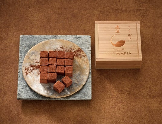 長野県を代表する日本酒の銘柄「真澄」。八ヶ岳に咲く可憐な花をイメージした純米大吟醸酒「真澄 山花」とコラボした生チョコレートです。