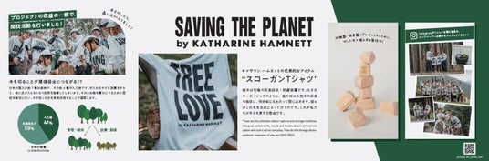イオンは1月9日(木)より、「イオン」「イオンスタイル」の「TVC」約270店舗※1)にて、デザイナーのキャサリン・ハムネット氏との共同プロジェクト「SAVING THE PLANET by KATHARINE HAMNETT」より、「TREE LOVE」スローガンTシャツを本格展開します。「TREE LOVE」は、「木を愛し、未来を育む」の想いを込めた新たなスローガンです。