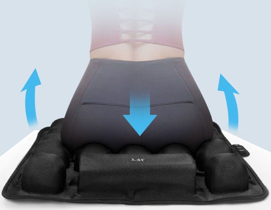 長時間のデスクワーク時や腰痛・坐骨神経痛にお困りの方におすすめ!の動くクッション。独自のエアセルは自動で空気の加圧・減圧を交互に変化し、お尻の負担を60%軽減!