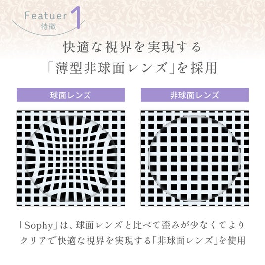 ◆快適な視界にも拘ったレンズは、歪みが少ない非球面レンズを使用し、パソコン・スマホ利用も想定しブルーライトカットコートもかかった高品質なレンズを採用しており、ユーザーに快適な視界を提供します。