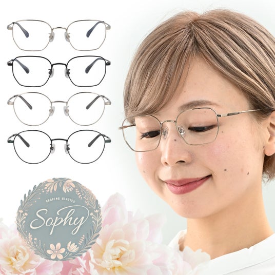 ◆トレンドの金属の光沢が上品なメタルフレームで、非球面レンズを採用することで快適な視界にも拘った老眼鏡「Sophy ソフィー」