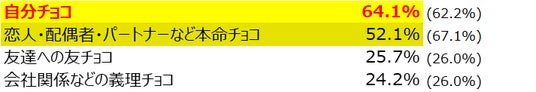今年のバレンタインは「自分チョコ」を買う予定の人が、「本命チョコ」よりも約12%も上昇