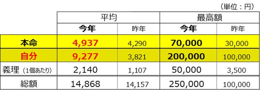 ※総額は本命、自分、義理の合計ではありません