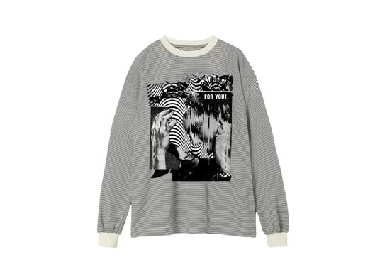 メリノウール100%ロンTEEのみを展開する新進気鋭のブランドとのコラボレーション。抜群の着心地と機能性を誇りながら街着としても日常に溶け込むプロダクトです。本展示のメインビジュアルである河村康輔氏が制作したアーカイブ作品の特別編集グラフィックを載せたロンTEEです。