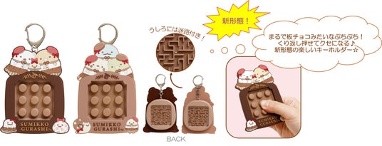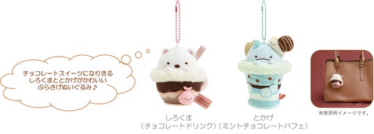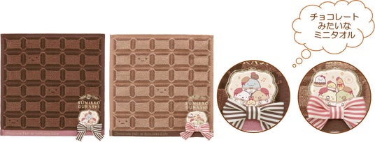 板チョコ風のミニタオルや、実際に喫茶すみっコですみっコたちが使っているデザイン風のマグカップ、チョコレートカラーやチョコレートフェアをイメージした衣装を着たぬいぐるみたちや、チョコレートスイーツになりきったぶらさげぬいぐるみなど、すみっコたちと一緒に喫茶すみっコのチョコレートフェア気分が楽しめるようなラインナップになっています。