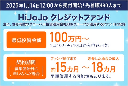2025年1月14日(火)12時から「HiJoJo クレジットファンド」の募集を開始いたします。