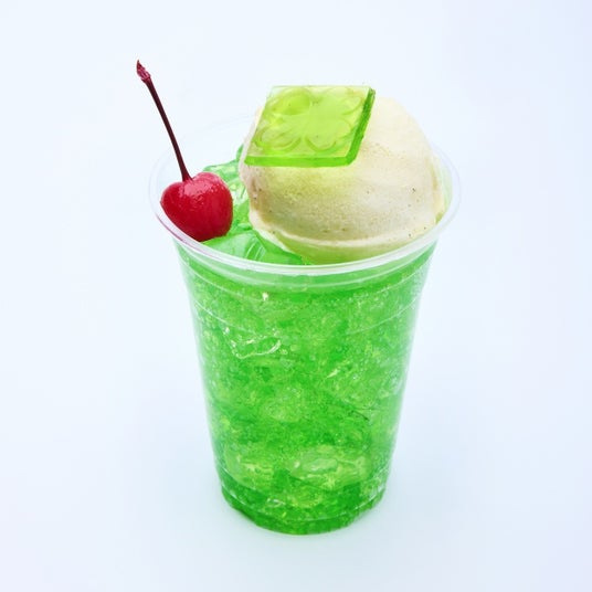しゅわ×02クリームソーダ 550円クリームソーダの上に、平成世代に流行した「タイルシール」をイメージしたクローバー型のゼリーを乗せました。