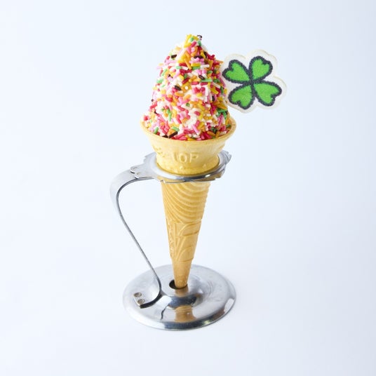 で出来たクローバーを添えました。バニラ・抹茶・ミックスの3種類からお選びいただけます