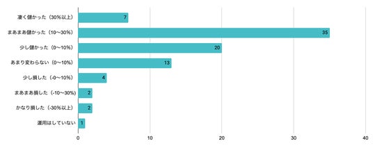 半数の人が10%以上の儲けを出したと回答。昨年の一時的な株価急落はあったものの、総じて株高の影響もあり成果は出ているものと推察できます。
