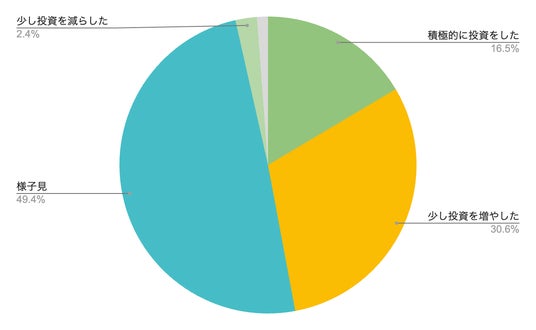 約半数の方は「様子見」と回答。次いで「少し投資を増やした」が多くなっています。