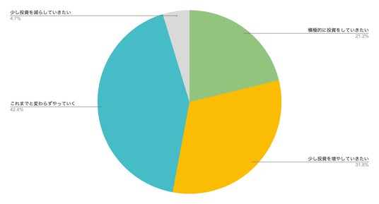 約53%の方は投資強化の方向性と回答、一方、約42%の方は現在のままと回答しています。