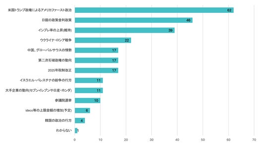 多くの方は「米国トランプ政権の経済政策動向」や「日米金利差の縮小」、「日本の経済動向」と回答しています。