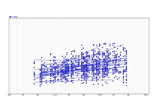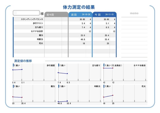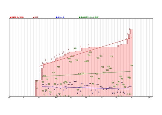 判断力・運動能力が必要なゲームのスコアグラフは、回数を重ねるごとに利用者全体のスコアが徐々に上昇していることが読み取れます