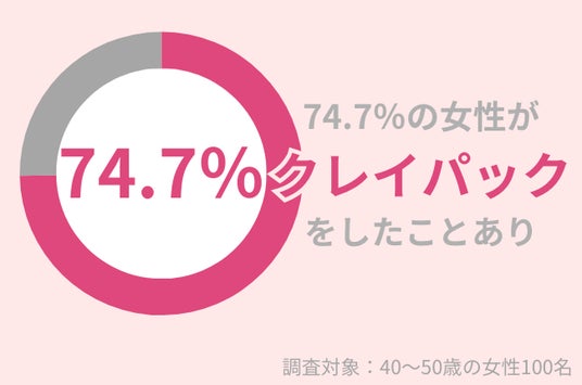 調査の結果、40代女性のうち、74.7%の方がクレイパックをしたことがあるとわかりました。クレイパックは、泥の吸着力を利用して、皮脂や古い角質を効果的に除去するために使用します。特に皮脂が多いTゾーンに最適で、使用することで肌がすっきりとした感触を得られます。