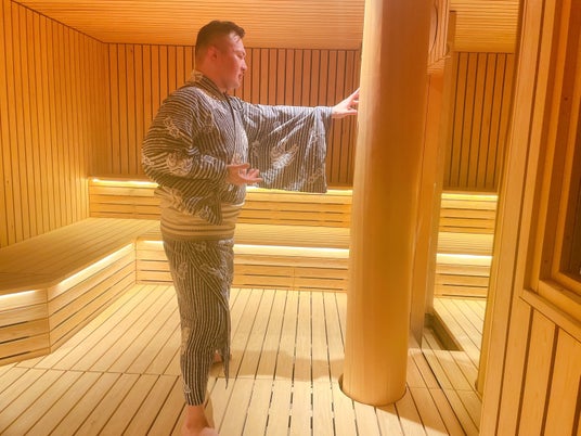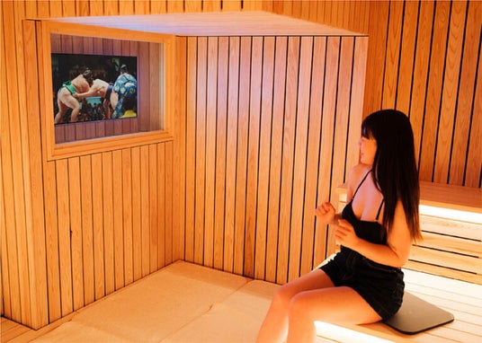 サウナ室で相撲観戦