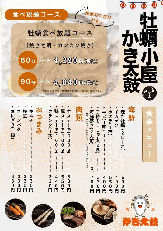 広島や兵庫などの漁港から直送の新鮮な牡蠣を心ゆくまで堪能できる「牡蠣小屋 かき太鼓」が2025年1月17日広島駅前(エールエールA館※福屋百貨店屋上)に冬季限定でNEW OPEN!