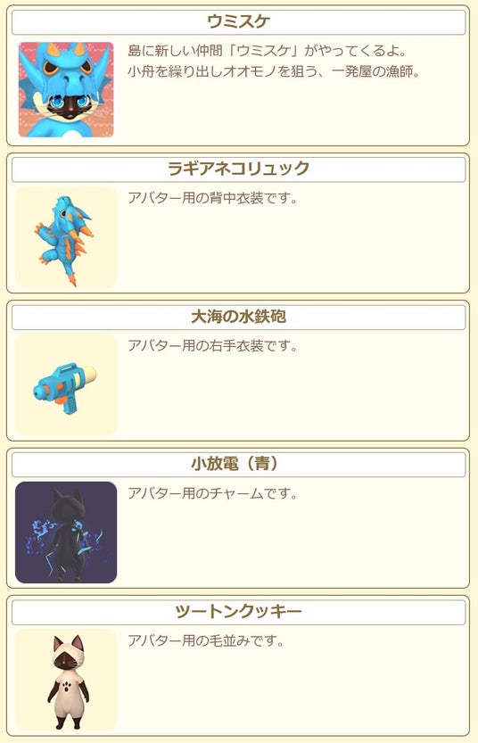 イベントに参加して「ウミスケ」を仲間にしたり「大海の水鉄砲」などのアバター用衣装を獲得しよう!