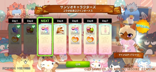 ■「サンリオキャラクターズコラボ記念ログインボーナス」3週連続配布の第2週「マイメロディTシャツ」を配布