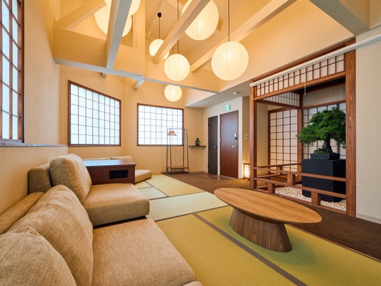 「今昔荘 大阪 天保山 -松柏-」建物2階、客室面積: 88平方メートル 、最大8名、2寝室、4ベッド