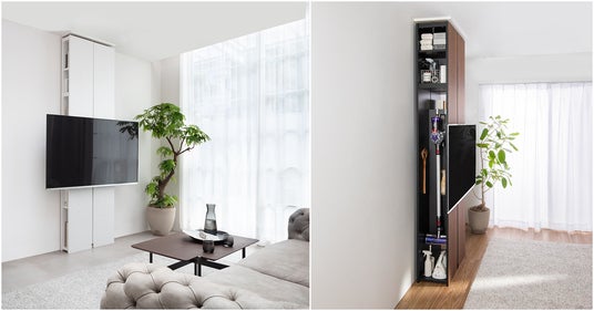 天井高200~255cmに対応した突っ張り式パネルで、壁に穴を開けずにテレビを壁掛け設置