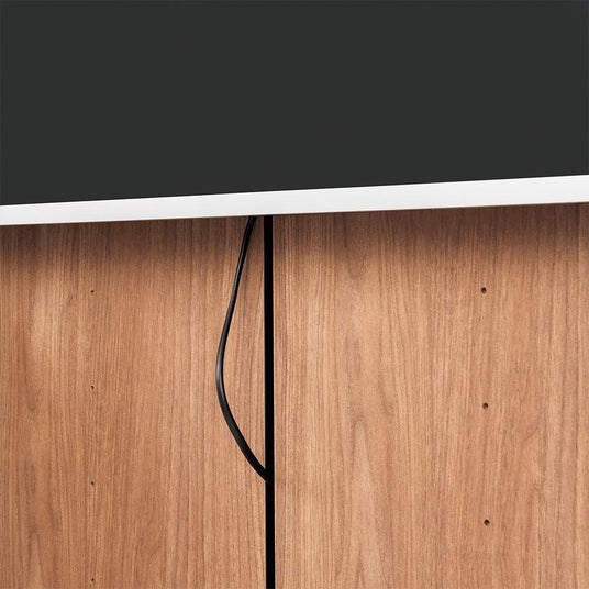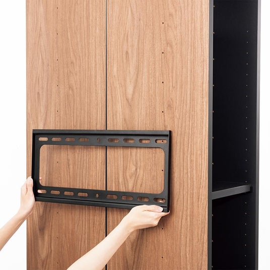 1cm単位で高さオーダーが可能なので、天井高200~255cmの範囲であれば、突っ張りタイプのパネルがぴったりと設置できます。テレビは見やすい高さに取り付けられ、また、パネル中央にはスリットがあるため、どの位置にテレビを設置しても配線しやすく設計されています。26~65インチテレビ対応(耐荷重約40kg)してます。