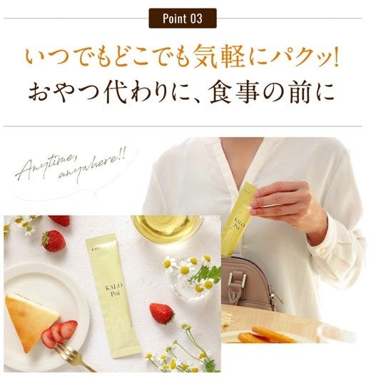 全国に約40店舗「ドクターズ セルフエステ BODY ARCHI」を展開する株式会社ボディアーキ・ジャパン(本社:東京都渋谷区、代表取締役:滝 浩介、以下 BODY ARCHI)は、会員制オンラインショップ「おうちアーキ」へ、世界クオリティの業務用ヘアカラーチャートの製造や、化粧品輸入・流通加工を手がける株式会社スタッフス(本社:愛知県一宮市、代表取締役:白木 孝明)がてがける機能性表示食品「KALOPoi(カロポイ)」を1月14日(火)に販売開始いたします!