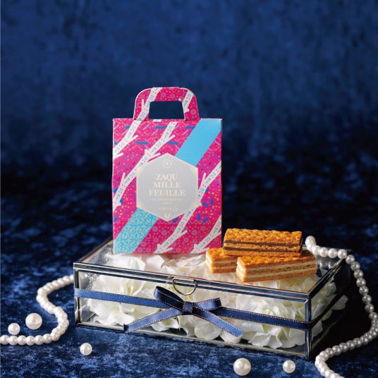 ISHIYA Gの人気商品「ザクミルフィーユ」より、3個入アソートを限定販売。かわいいミニバッグ型のパッケージに“ホワイト”と“ミルク”2種のフレーバーを詰め合わせた、プチギフトにもおすすめの商品です。