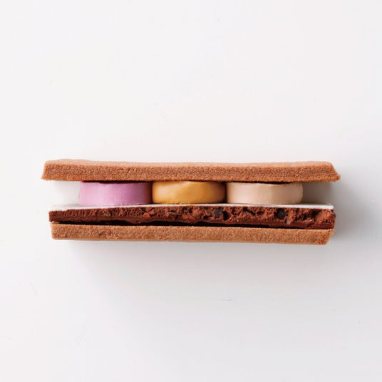 上記の3層を重ね、バターが香るココア風味のサブレでサンド。
