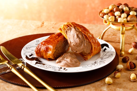 サクホロ食感のパイ生地とクリームのハーモニーが堪らない「フランセパニエ」。北海道産生クリームとチョコレート、ヘーゼルナッツを使った期間限定味が、大好評につき再登場!