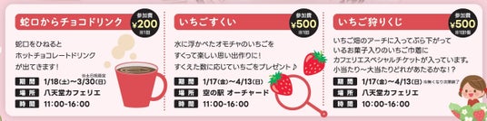 ・期間限定体験「いちごすくい」「いちご狩りくじ」「蛇口からチョコドリンク」