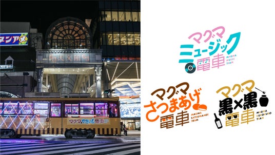 120万枚の桜の花びらに埋もれる「SAKURA CHILL BAR by 佐賀」や、車内でいちご狩りを楽しむ「いちごさんバス」など、数多くの体験型イベントを手がけるクリエイター「アフロマンス」率いるクリエイティブカンパニー「Afro&Co.(東京都渋谷区、代表:山崎剛弘)」は、⿅児島市(市長:下鶴隆央)と共に、ほくほくの焼き芋を食べながら⿅児島市内を巡る体験型路面電車「マグマやきいも電車」を企画し、2025年2月に開催します。そしてこの度、コラボ企画として、鹿児島市内事業者と連携した3種類の「マグマコラボ電車」の運行が決定しました。3種類の「マグマコラボ電車」は、さつまあげを堪能できる「マグマさつまあげ電車」、黒酢と黒糖焼酎を味わうことができる「マグマ黒×黒電車」、そしてマグマシティカラーに光る特別仕様の路面電車の中で、DJによる音楽を楽しみながら鹿児島のお酒を味わう「マグマミュージック電車」となります。
